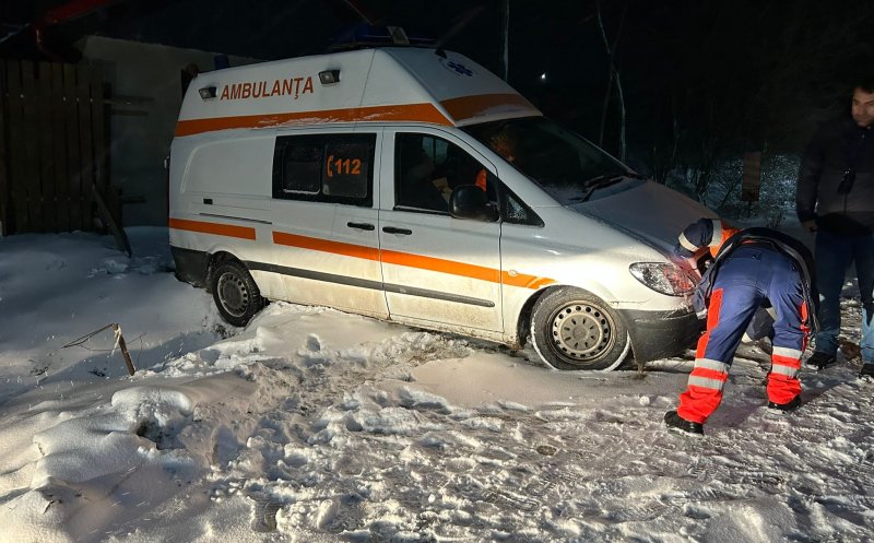 - O ambulanță blocată în zăpadă, care transporta un pacient