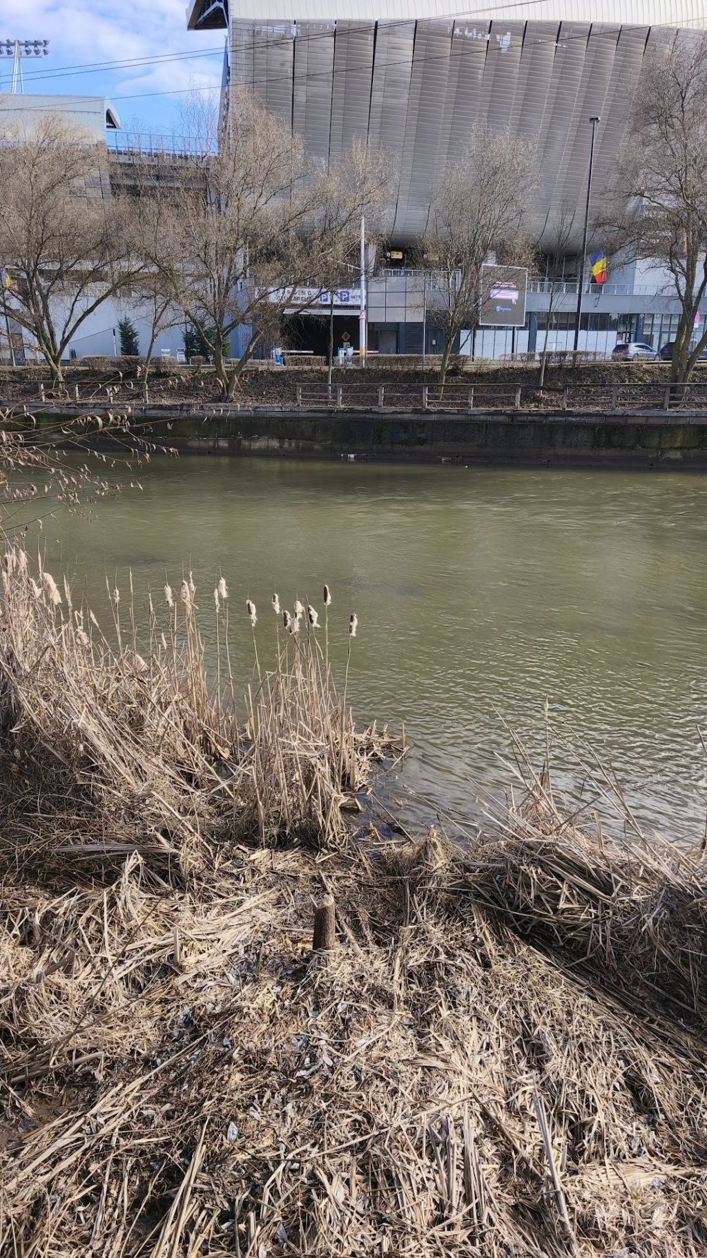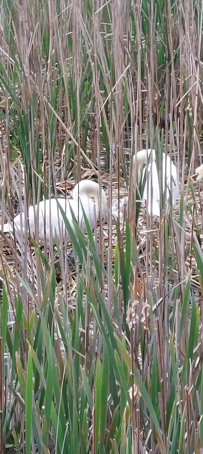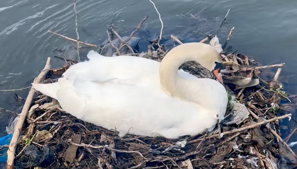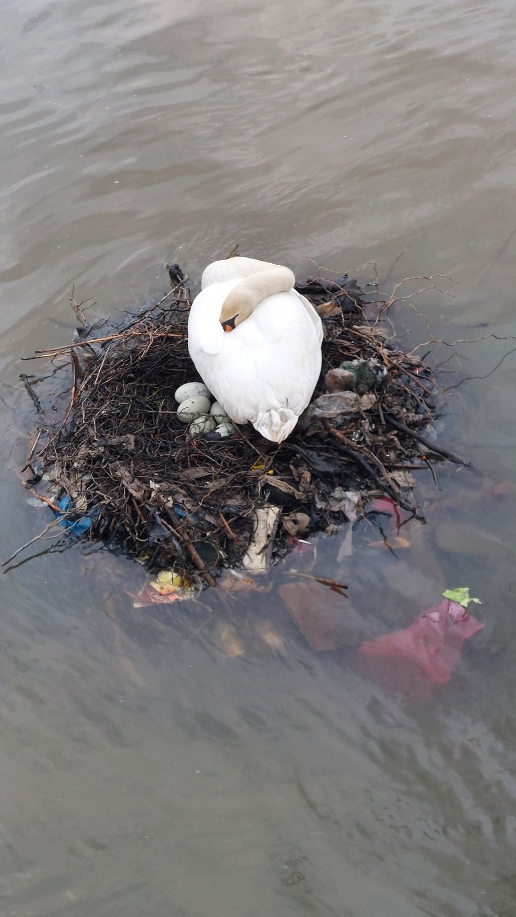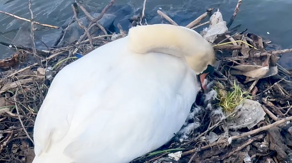 În lipsa vegetației, care a fost rasă de angajații celor care protejează apele, lebedele de pe Someș au ajuns în aval de stadion, și și-au făcut un cuib tapetat cu gunoaie și complet neprotejat.