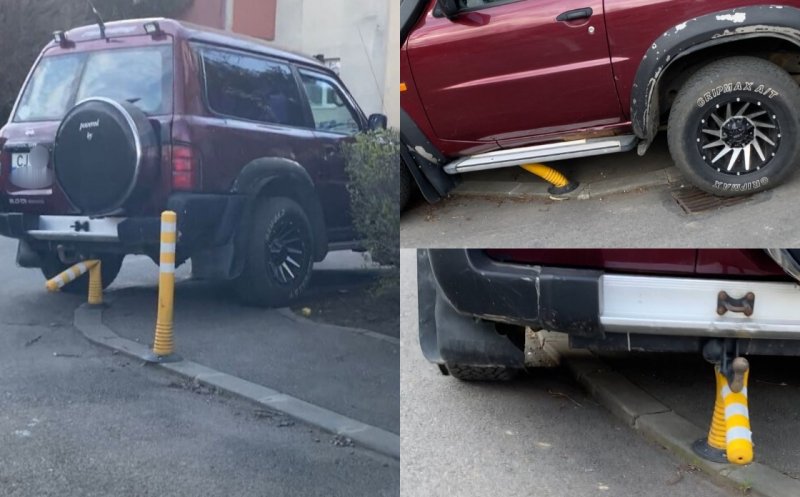 Un clujean a distrus stâlpișorii antiparcare amplasați lângă un trotuar pentru a parca mașina.