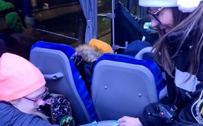 Foto Surpriză în drum spre școală! Moș Nicolae a urcat autobuzele școlare și le-a împărțit dulciuri copiilor