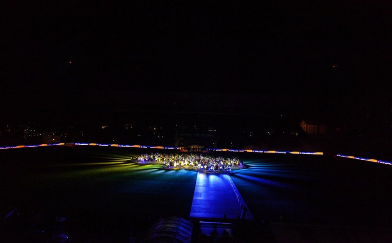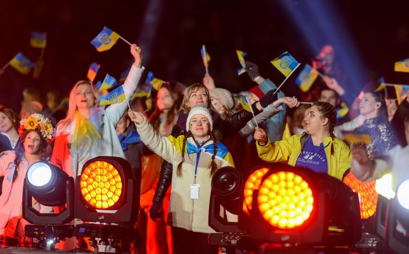 Înaintea partidei, pe o scenă în forma hărţii Ucrainei, amplasată la mijlocul terenului şi pe care se aflau 200 de refugiaţi ucraineni, mai multe artiste din ţara vecină, între care Ruslana, fostă câştigătoare a concursului Eurovision, au interpretat câteva melodii.