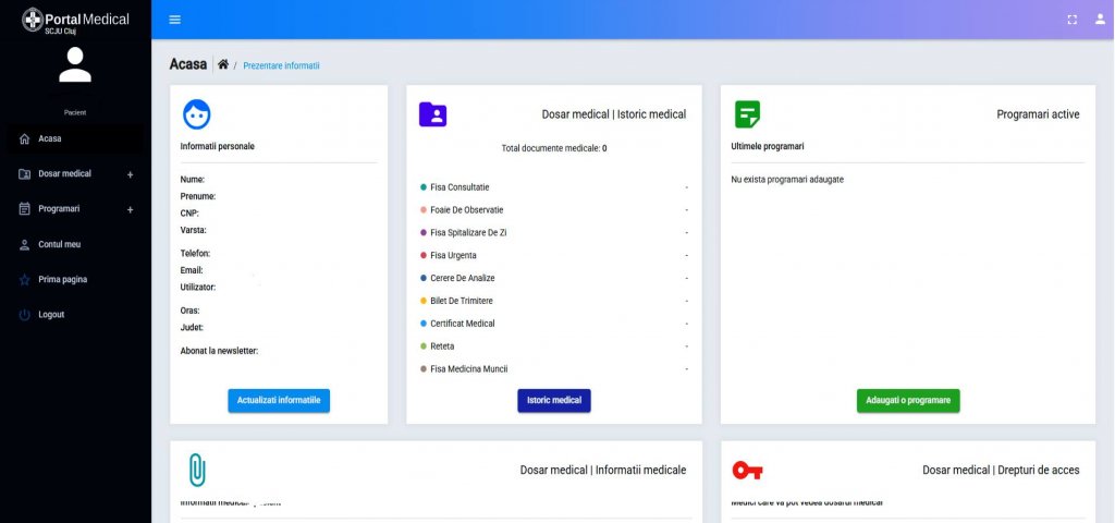 12:00 Portalul medical al pacienților este cel mai nou serviciu online implementat de SCJU Cluj, care vine în sprijinul pacienților și al profesioniștilor din sănătate.