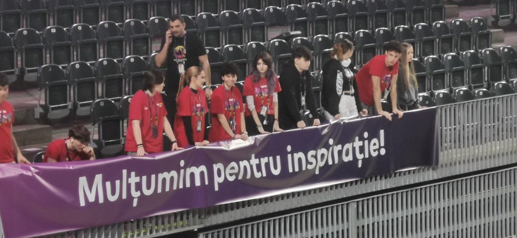 Momentul magic a fost însoțit și de mesajul "Mulțumim pentru inspirație!", afișat în tribune de voluntarii turneului de la Cluj-Napoca.