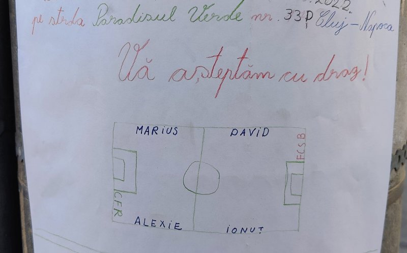 Este vorba despre un meci intre 4 pusti din cartier, ce va avea loc pe strada Paradisul Verde, intersectie cu Macesului. Micutii: Marius, Alexie, David si Ionut au facut invitatii pentru locuitorii din Buna Ziua, pe care le-au distribuit in zona, dar si afise explicative, pe care le-au lipit pe stalpii de iluminat, pentru a se asigura ca au parte de spectatori. Alexie si Marius vor evolua pentru CFR, iar David si Ionut pentru FCSB.