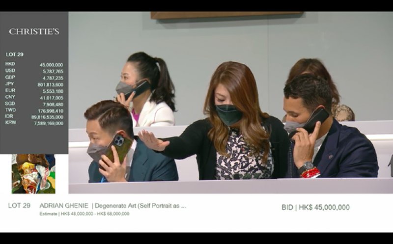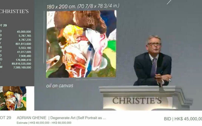 O lucrare intitulată „Artă degenerată”, realizată în 2018 de Adrian Ghenie, cel mai bine cotat pictor român, a fost vândută prin licitație, la Hong Kong, de casa de licitații Christie's, pentru suma finală de 56,85 milioane dolari Hong Kong (HKD), echivalentul a 7 milioane euro. În luna mai, un ulei pe pânză realizat în 2016 de Adrian Ghenie și intitulat tot ”Degenerate Art”, stabilise un record de licitație pentru artistul român, la Sotheby's. Tabloul a fost vândut pe 19 mai pentru 9.286.700 de dolari, după ce fusese estimat între 7 și 10 milioane de dolari. În aceeași lună, după doar o săptămână, dar de data aceasta la Hong Kong, lucrarea lui Ghenie ”Pie Fight Interior 12” a fost vândută la licitație pentru suma de 10.371.116 dolari, nou record al artistului, potrivit profit.ro.