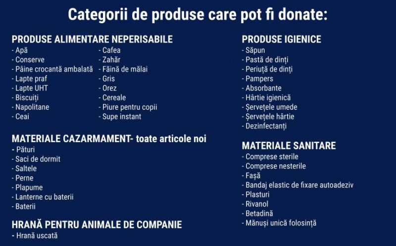 Lista centrelor de coletare donații și categoriile de produse care pot fi donate pentru refugiații ucrainieni