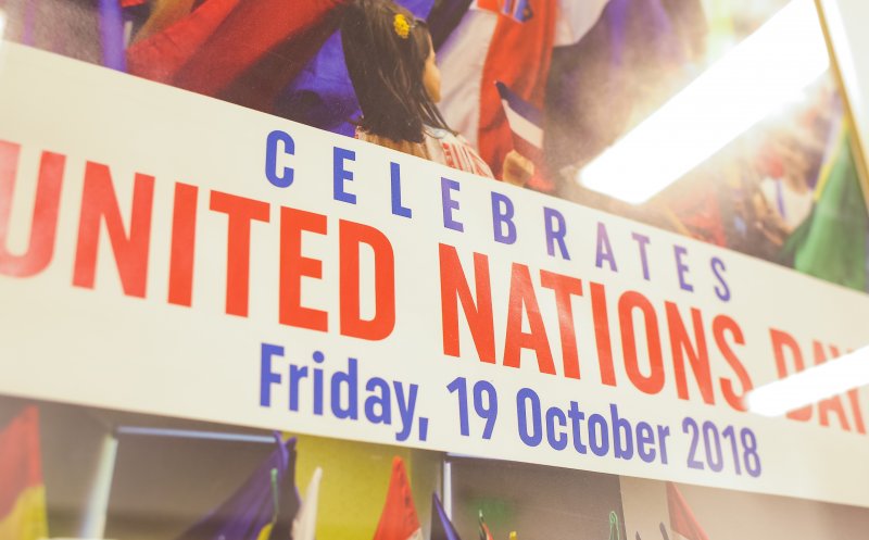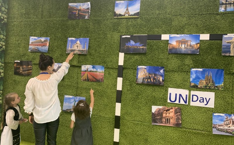 Ziua a început cu prezentările susţine de părinţi, prin care aceştia au împărtăşit cu elevii cunoştiinţe despre ţările şi culturile din care provin. A urmat amenajarea standurilor specifice fiecărei ţări cu mâncăruri tradiţionale, din care elevii au gustat cu multă curiozitate. De asemenea, au avut loc momente artistice şi o tombolă, urmate de Parada Drapelelor. Ziua s-a încheiat cu un spectacol special dedicat Zilei Naţiunilor Unite.
